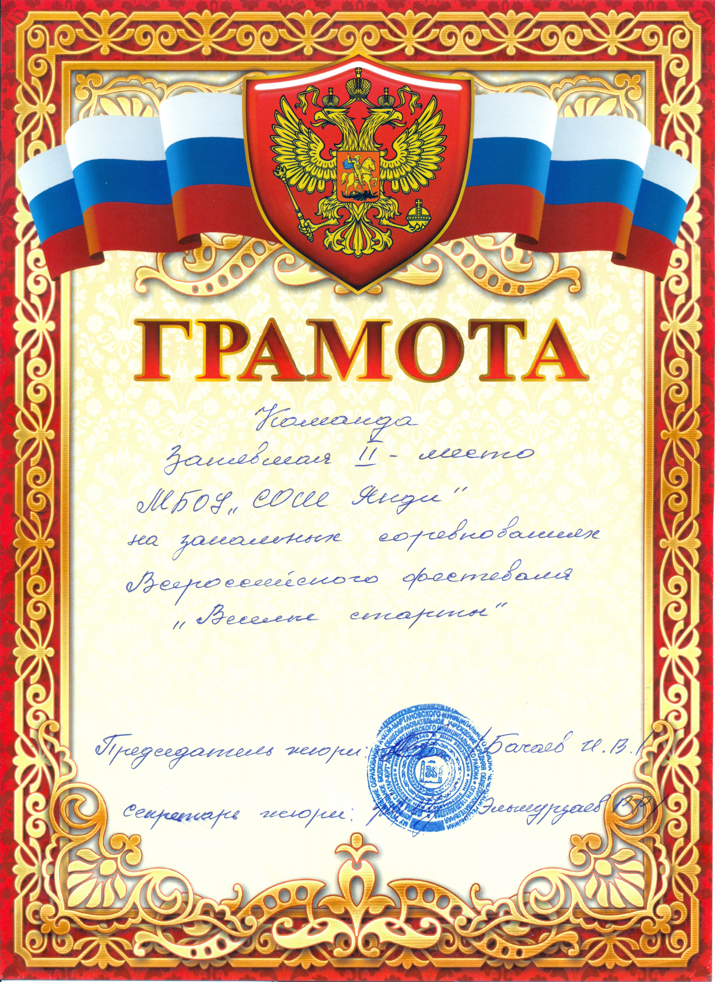 Второе место на зональных соревнованиях Всероссийского фестиваля "Веселые старты"