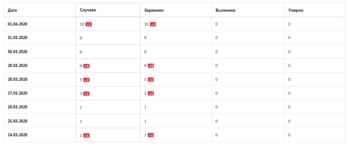 Cводные данные коронавирус 10 Случаев 10 Заражено 0 Вылечено 0 Умерло