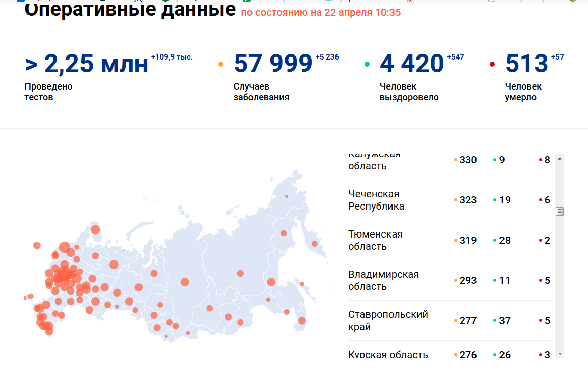 По состоянию на 22 апреля 10:35