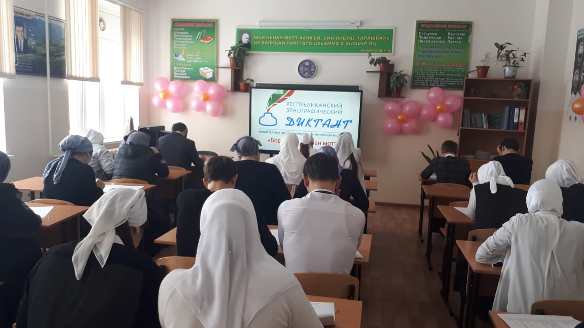 Сегодня в рамках празднования Дня чеченского языка, с целью повышения интереса к изучению родного языка, истории и этнографии Чеченской Республики, приняли участие в региональном этнографическом диктанте «Бовза, беза ненан мотт».