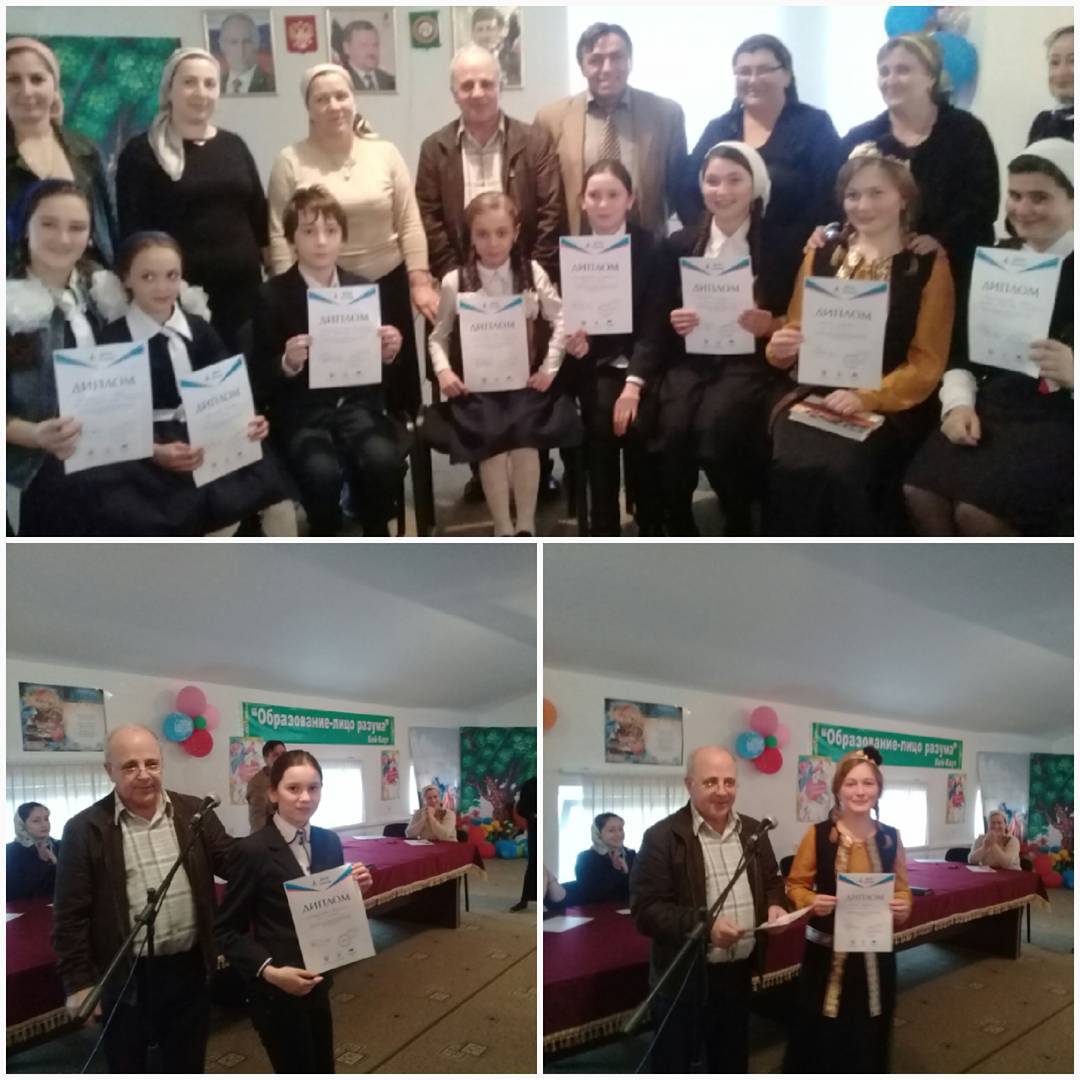 27.03.2017Сегодня завершился муниципальный этап конкурса "Живая классика". Первое место заняла ученица СОШ 1 с. Валерик Эльмурзаева М., второе место - ученица СОШ с. Янди Исаева Х., третье место заняли ученица СОШ с. Закан-Юрт Татаева А. и ученица СОШ с. Бамут Мержуева А.