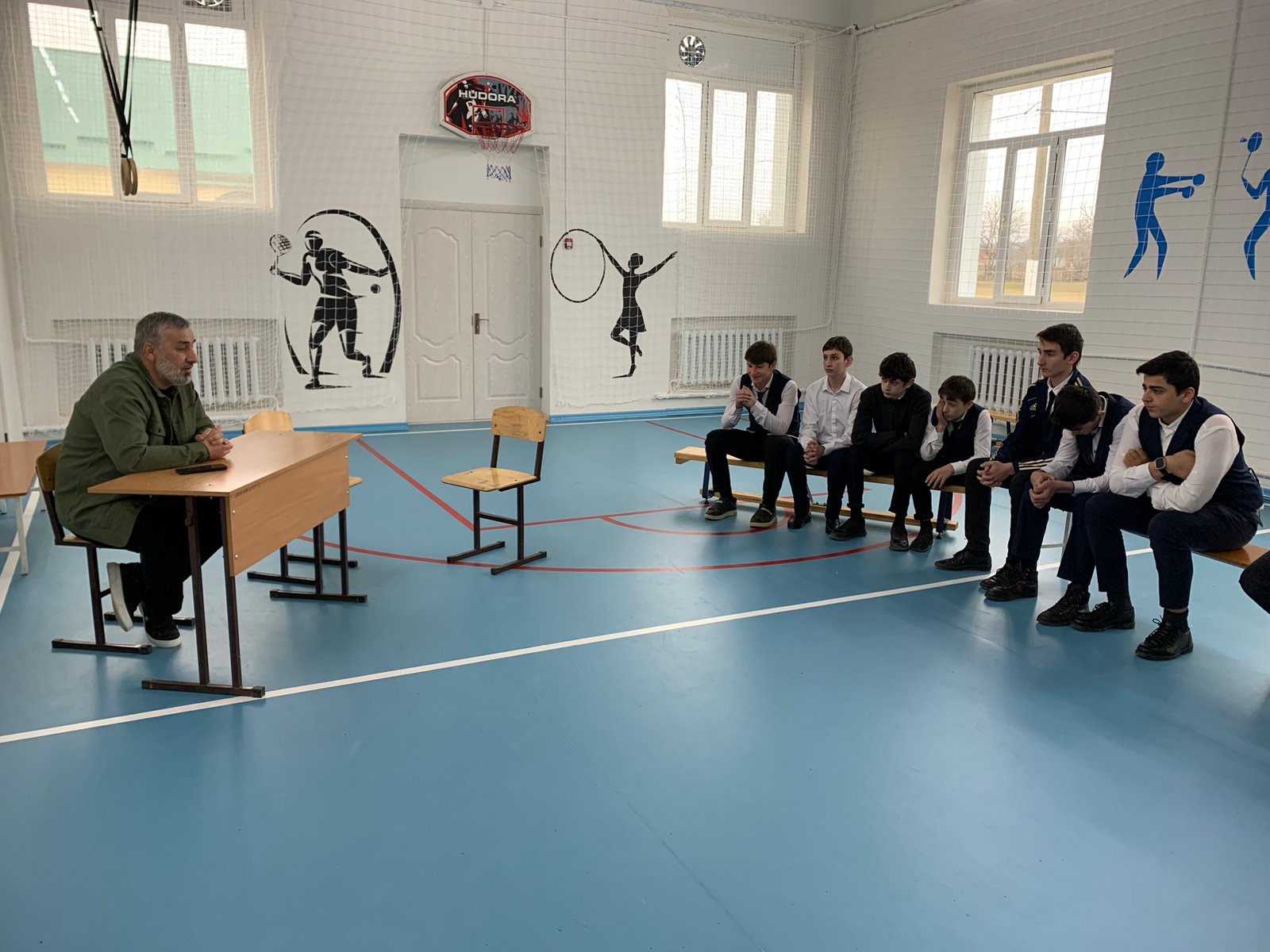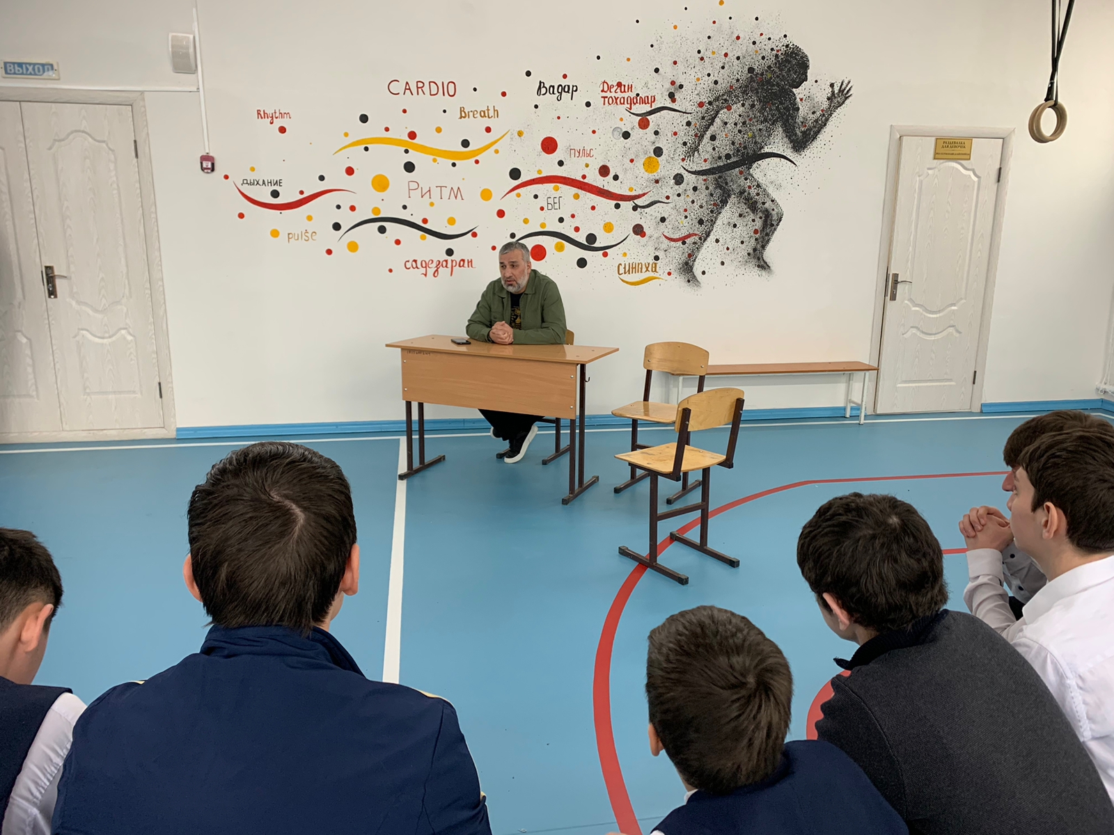 13.03.202313 марта учащиеся СОШ с. Янди приняли участие во Всероссийском проекте «Классные встречи» Российского движения школьников. Гостем стал вице-президент Федерации "Ахмат" "Кудо-каратэ" заслуженный тренер Чеченской Республики и мастер спорта России по каратэ Лом-Али Цороев. В мероприятии приняли участие более 20 обучающихся 5-9 классов.