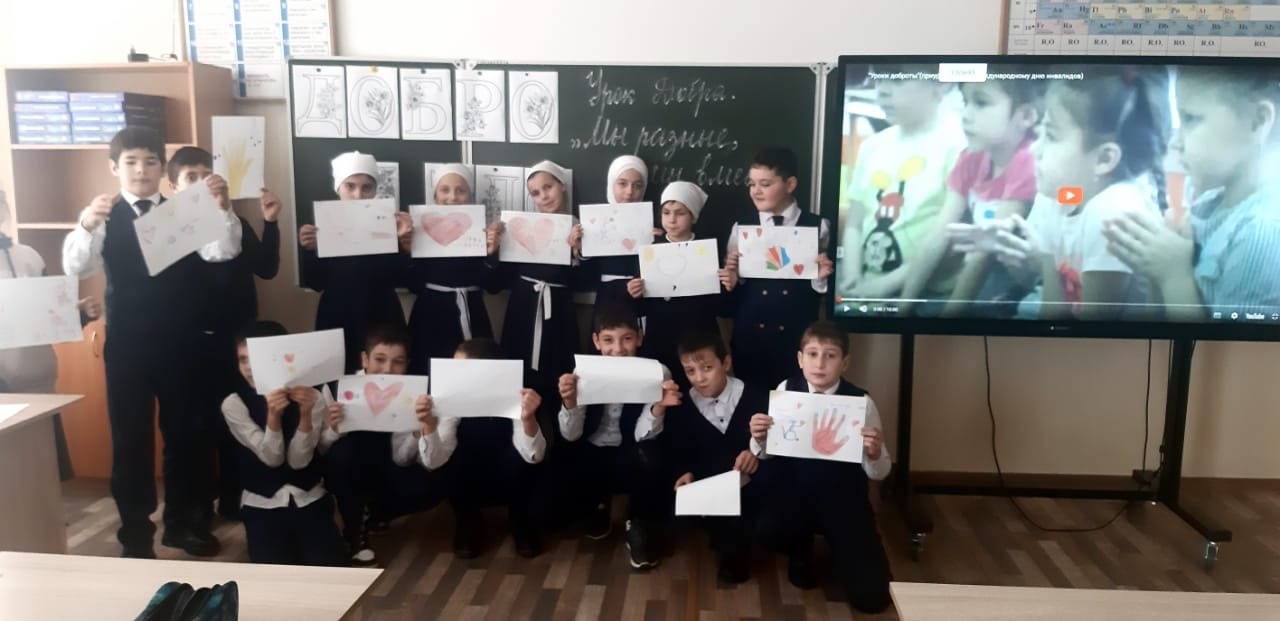 04.12.202304.12.2023г.МБОУ "СОШ с .Янди" Педагогом-психологом Мутаевой Ф.Ш.Провела занятие в 4- ом классе на тему: "Международный День инвалидов".Психолог донесла до детей что такие люди ничем не отличаются от здоровых детей, что всегда нужно относитьсяс добротой, милосердия, сострадания, щедрости, воспитание в них уважительного, гуманного, внимательного отношения к инвалидам и признание их как полноценных членов общества.А также провела беседу «Добру откроются сердца». Внимание было обращено на то, что жизнь инвалида очень отличается от жизни других людей. В ходе мероприятия ребята обсудили значение слова доброта. Поделитесь своей добротой с другом. Прикоснитесь ладошками к другу. Просмотрели и обсудили видеоролик о детях с ограниченными возможностями под песню «Мы просто другие» (муз. Александра Ермолова, сл. Вадима Борисова).Итогом классного часа стало солнышко, ребята повторили добрые слова и объяснили их смысл. Учащиеся много узнали о детях с ограниченными возможностями, почувствовали сами, как им трудно бывает ходить, разговаривать, бегать, играть. Приняли для себя решение, если увидят такого ребенка, всегда помогут ему, ведь у него тоже есть мечты, желания, фантазии и он такой же, как они.