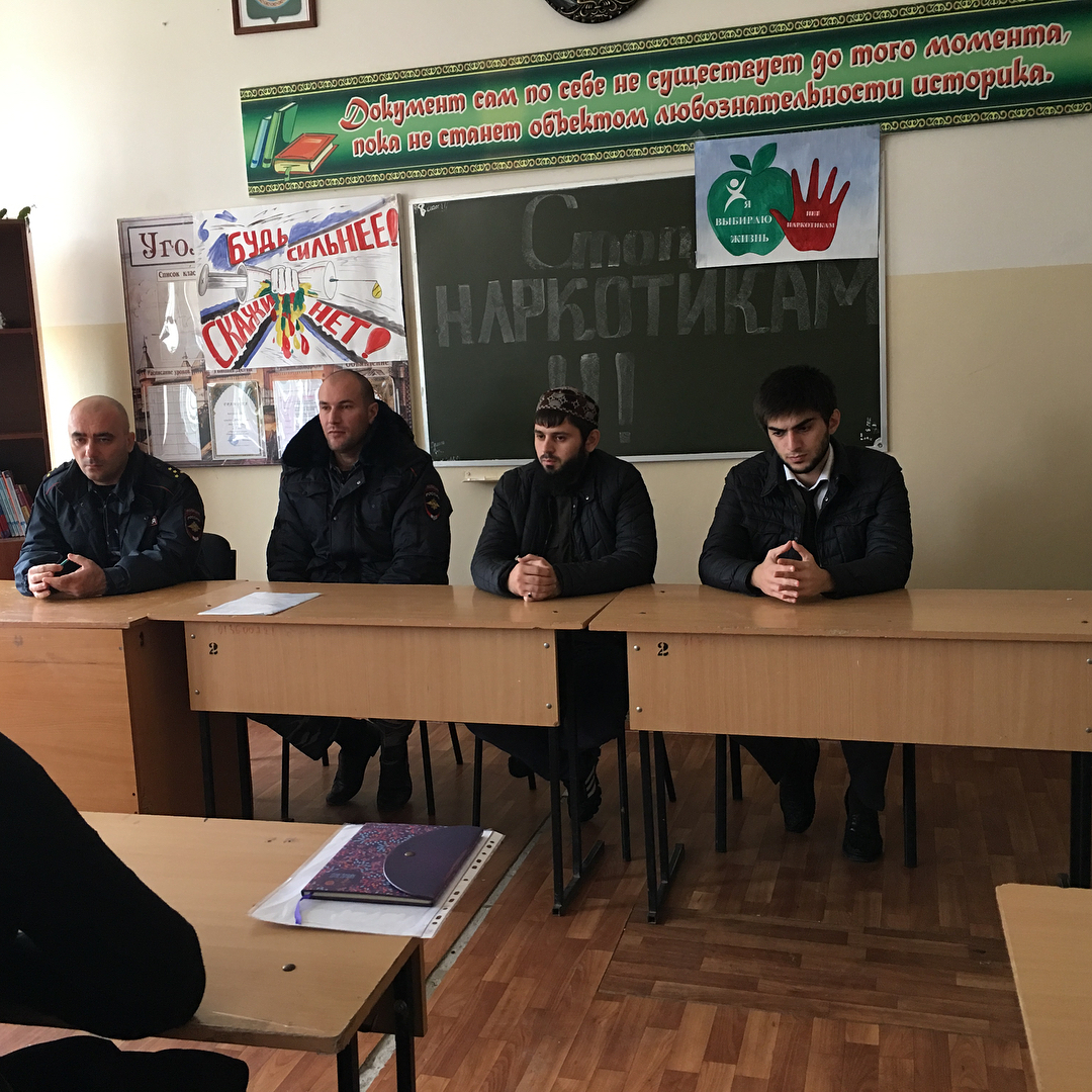 11.11.2017Во исполнения комплексно межведомственного плана мероприятий по профилактике правонарушений и в целях повышения уровня профилактической работы среди несовершеннолетних по предупреждению, пресечению распространения наркомании и алкоголизма 11 ноября 2017г в МБОУ "СОШ с. Янди" инспектором ОПДН ОУУП и ПДН ОМВД России по Ачхой-Мартановскому району капитаном полиции Букаев А.В., лейтенантом полиции Хакимов Р.А., педагог-организатором по ДНВ школы Цокаев И.Б. и учителем английского языка Хачукаев А.М. проведена профилактическая беседа с учащимися 8-11 классов на темы: "Стоп наркотикам!", "Религиозный экстремизм".