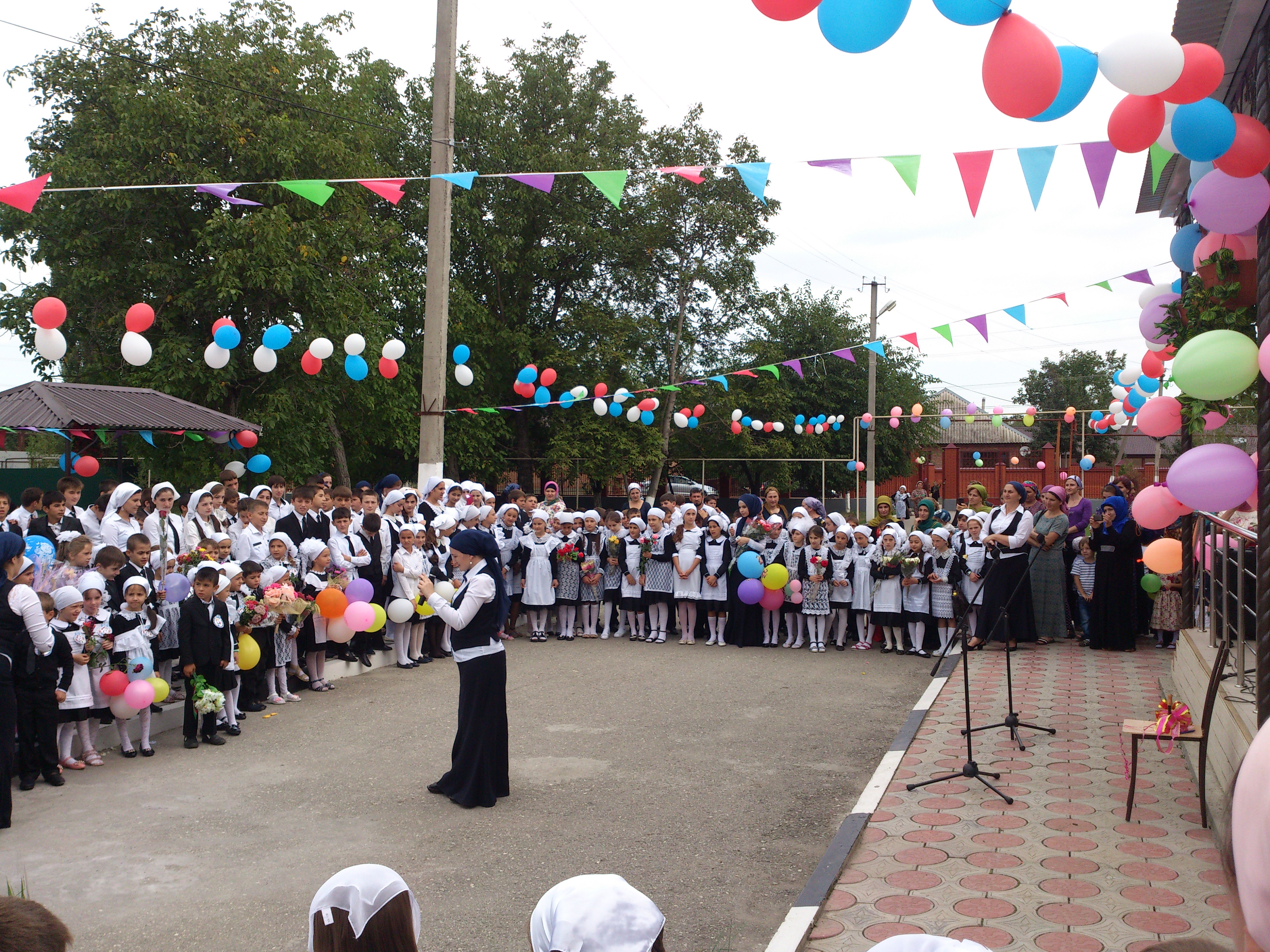 Первоклассников встретила громкими аплодисментами вся школа. Торжественную линейку открыла директор школы Шовхалова Малика Салаудиновна. Она обратилась с приветственным словом к ученикам, учителям, родителям, гостям. На празднике присутствовали почетные гости: ведущий специалист отдела образования Раисова Хадишт, глава администрации Яндийского сельского поселения Кагерманов Таус Абуязитович. Затем выступили первоклассники с подготовленными стихами. Не оставило равнодушными никого из присутствующих их выступление.В конце прозвенел Первый звонок, и в школу вошли первоклассники в свой первый в жизни урок. Все классные руководители провели тематические уроки «Урок мира» посвященный первому президенту Чеченской Республики Ахмат-Хаджи Кадырову.