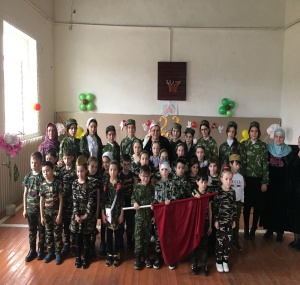 На фасаде здания школы был вывешен баннер, посвященный Дню защитника Отечества». Педагогом-библиотекарем Алсабековой З.Х. была организована книжная выставка «Защита Родины – священный долг». «Почетное дело - защита Отчизны», «Урок мужества» под таким девизом прошли классные часы во всех классах. В ходе, которых классные руководители познакомили обучающихся с историей создания праздника 23 февраля: