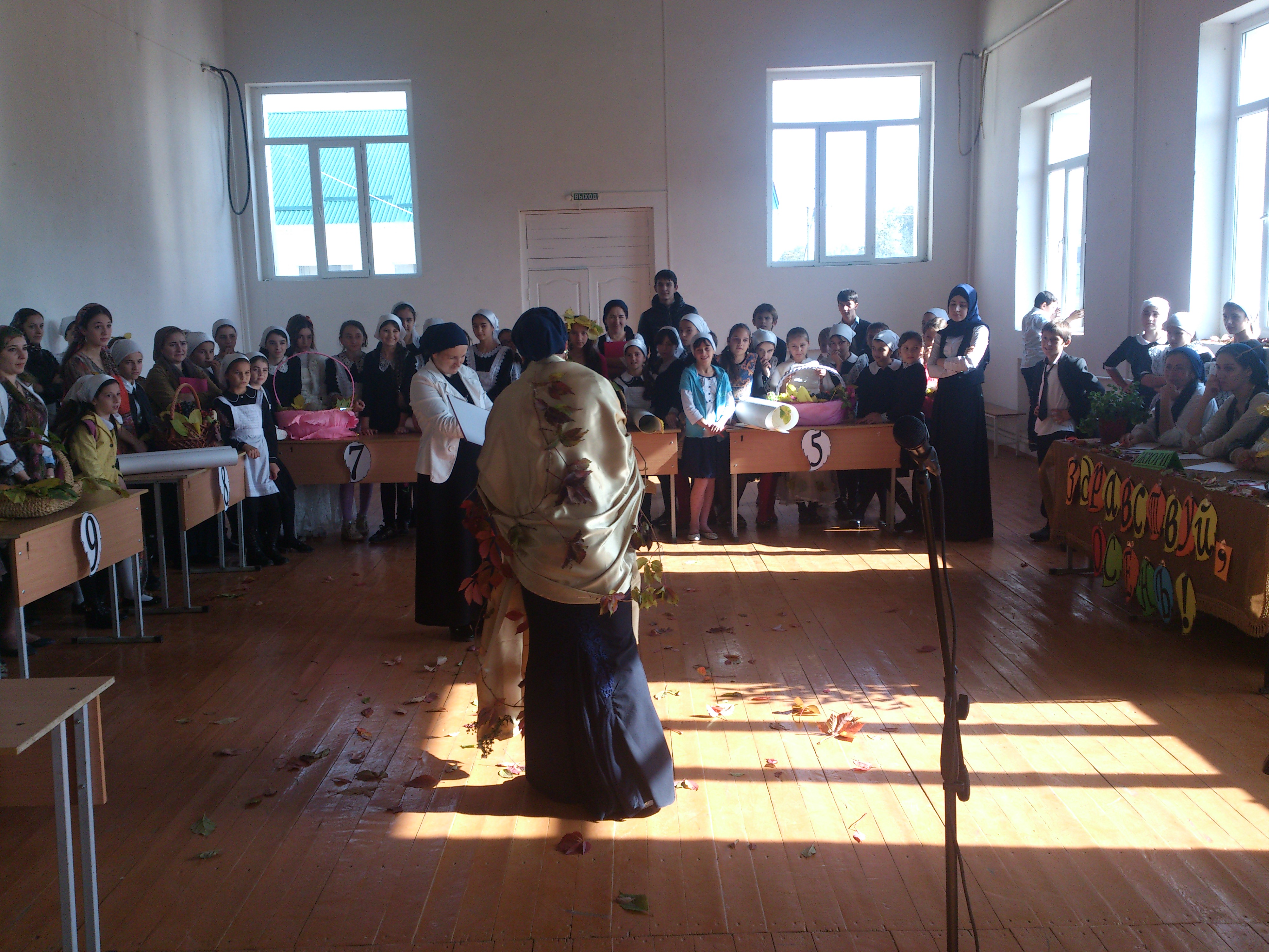 Сегодня в нашей школе прошел осенний бал. В конкурсе участвовали с 5 по 11 классы. Первое место занял 6 класс. Второе место было поделено между двумя классами, между пятым и десятым. Третье место занял 8 класс.