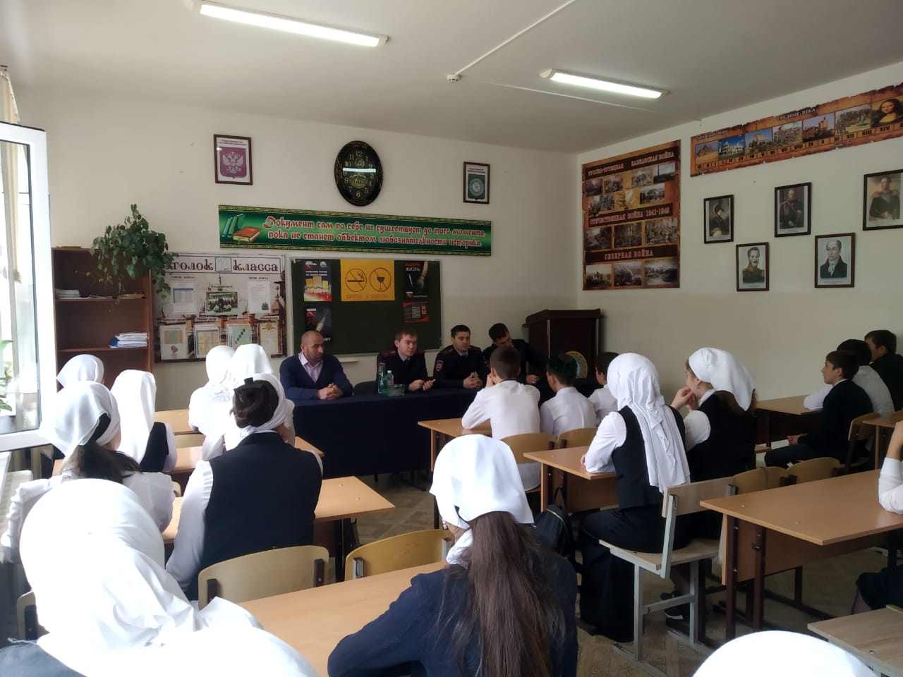 На протяжении всей беседы ребята с большим вниманием слушали инспектора ОПДН Исмаилова И.Ш. и педагога-организатора по ДНВ Хачукаева А.М. и получили ответы на все интересующие их вопросы.